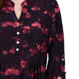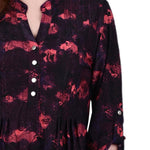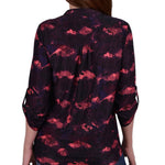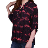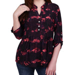 With 3/4 roll tab sleeves and a button up detail, this top is flattering on any woman.