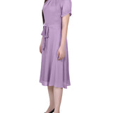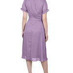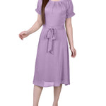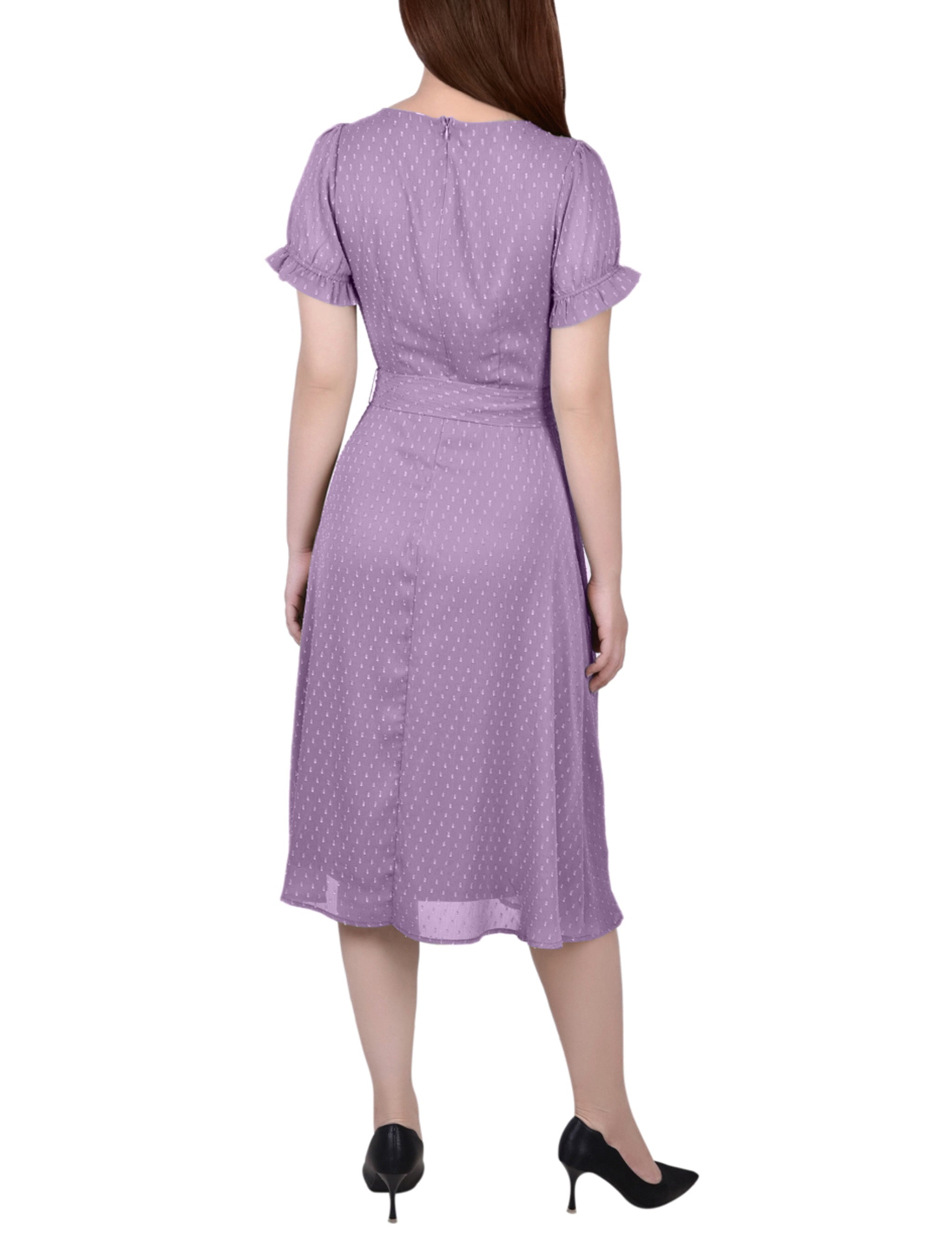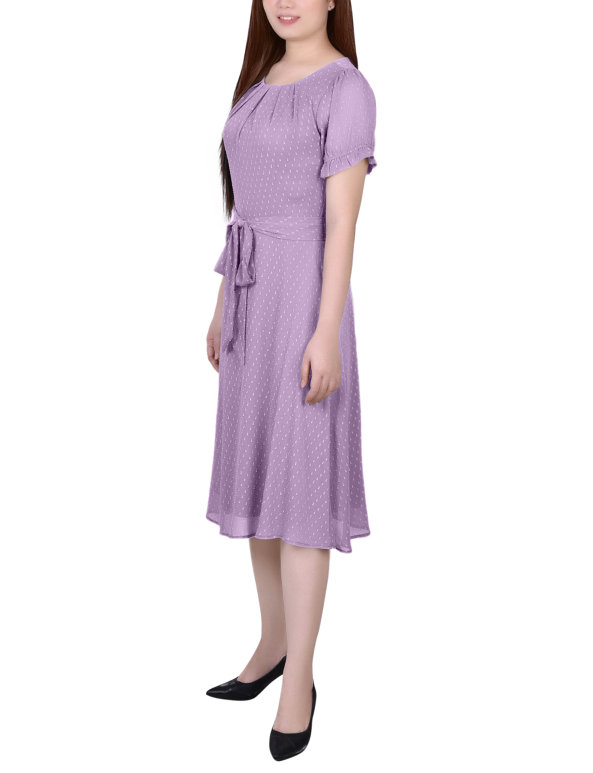 Regal Orchid Short Sleeve Belted Swiss Dot Dress – Dressbarn
