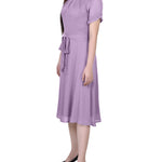 Regal Orchid Short Sleeve Belted Swiss Dot Dress