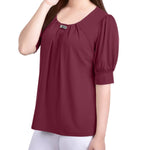 Rhododendron Short Sleeve Balloon Sleeve Top With Hardware