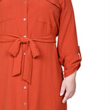 Rooibos Tea Long Roll Tab Sleeve Shirtdress - Plus