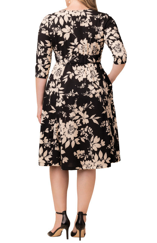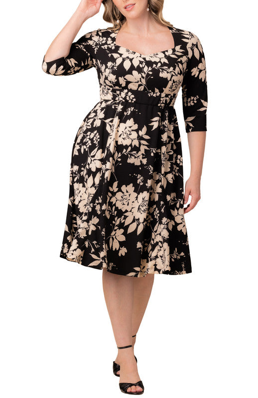 Make a regal entrance in the Royal Sweetheart Cocktail Dress. A fitted bodice with a sweetheart neckline and slim 3/4 sleeves flows into a dramatic A-line skirt with godets for added flare.