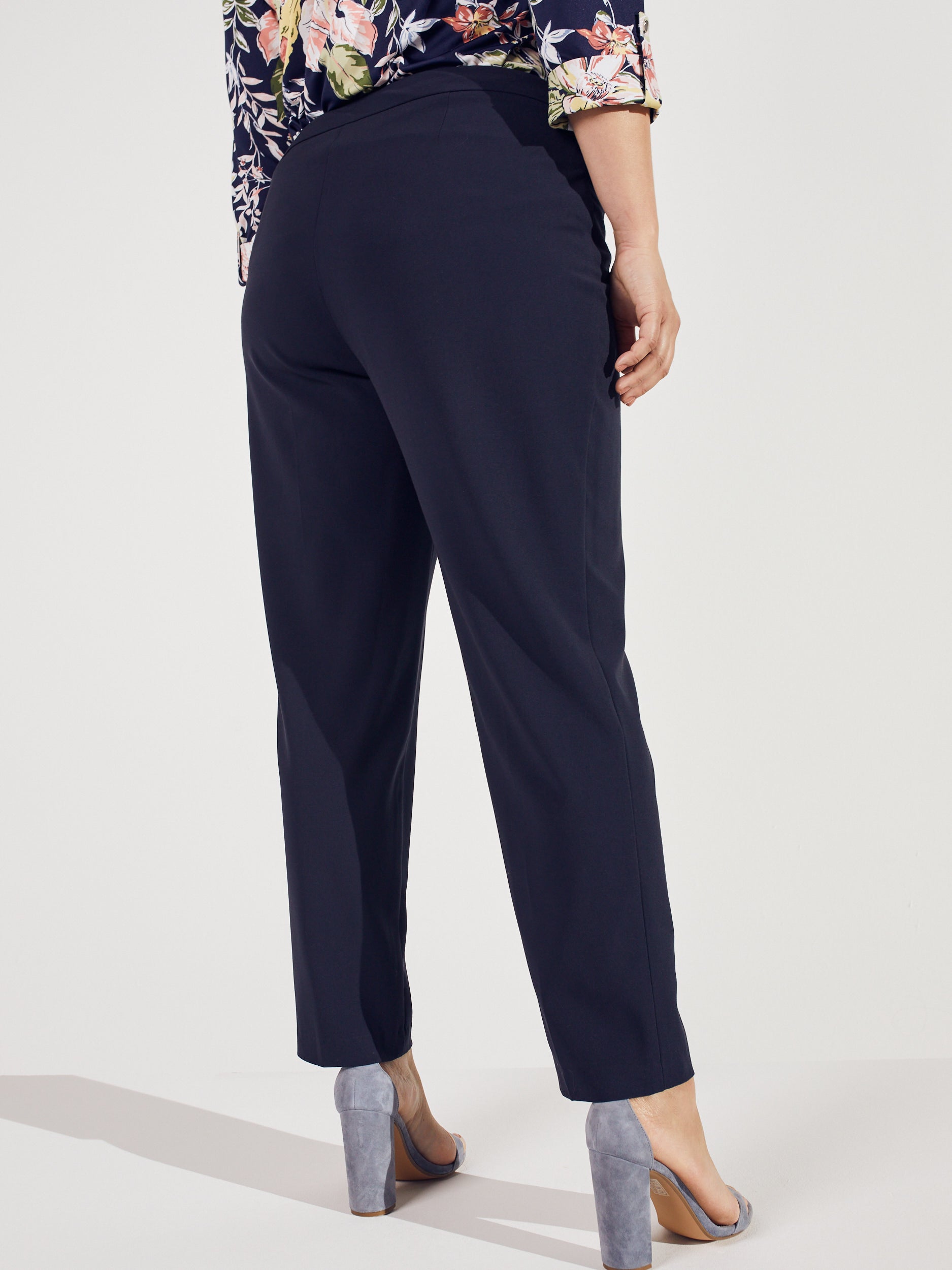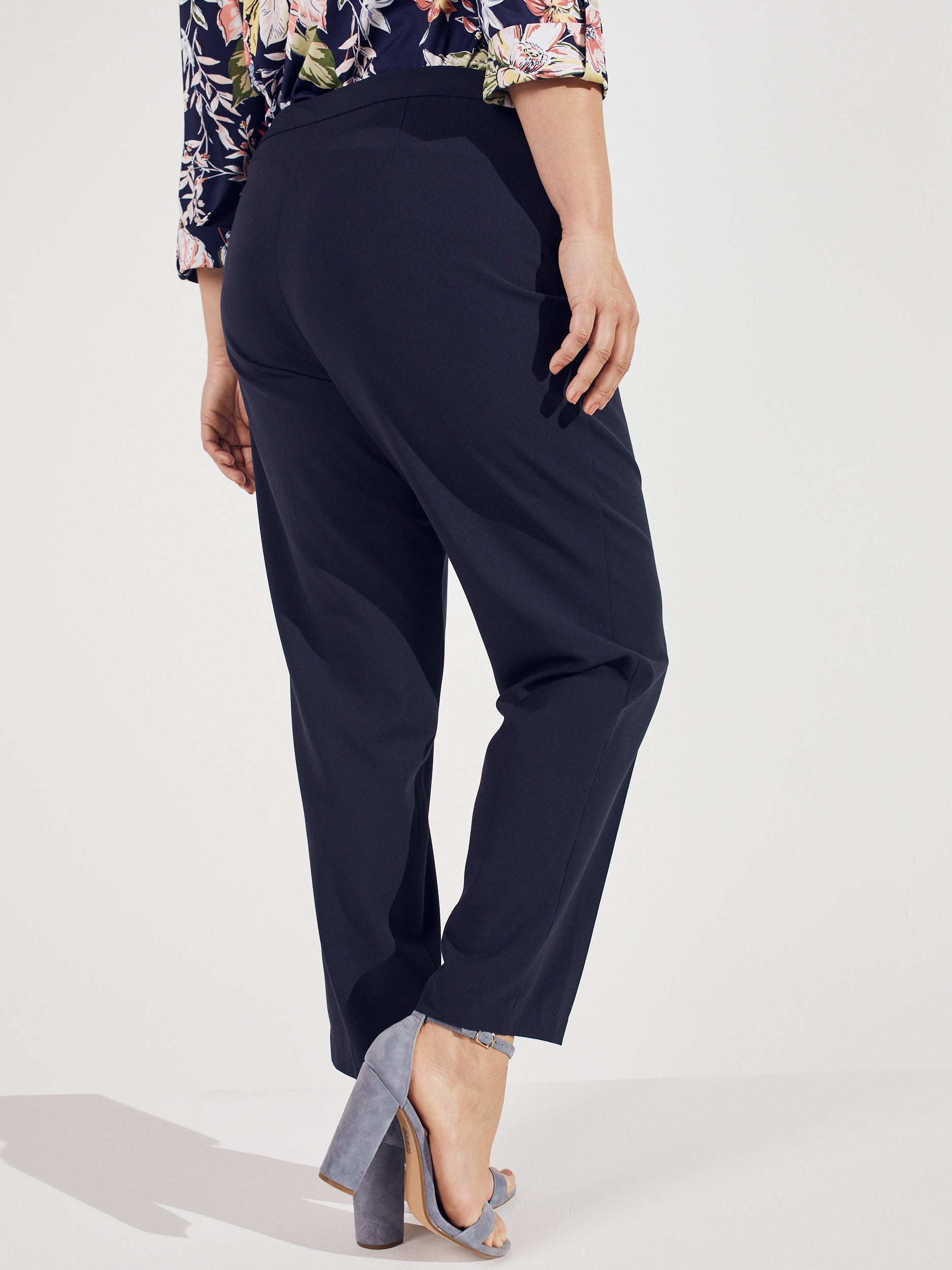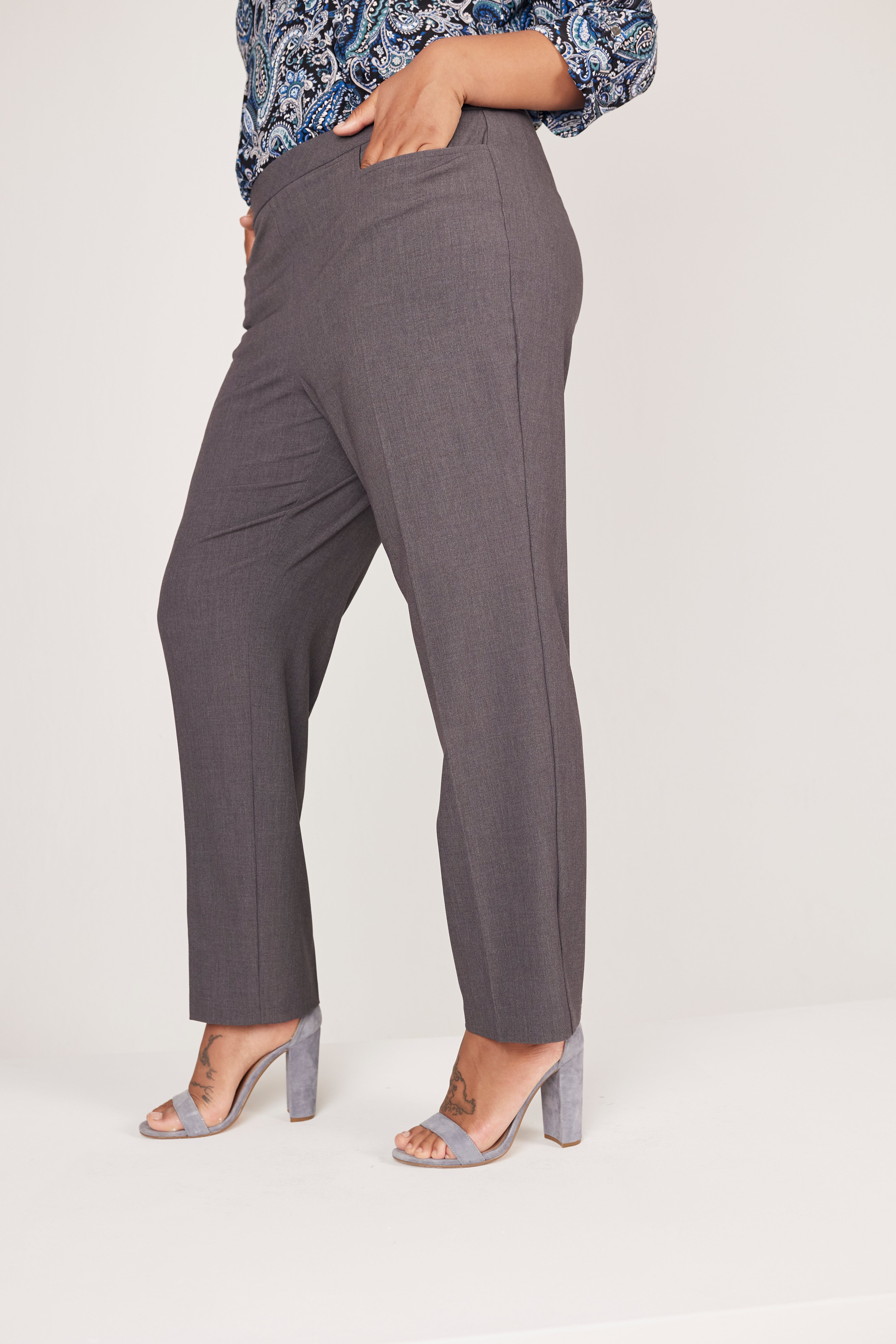 Classic comfort with a clean look. These pull-on pants feature practical L-shaped pockets and a smoothing waistband that keeps everything in place. The soft, stretchy fabric drapes beautifully for a look that’s as easy as it is flattering.