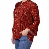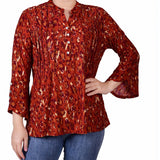 With overlap button sleeve cuffs and pintuck yoke detail, this top is flattering on any woman.