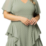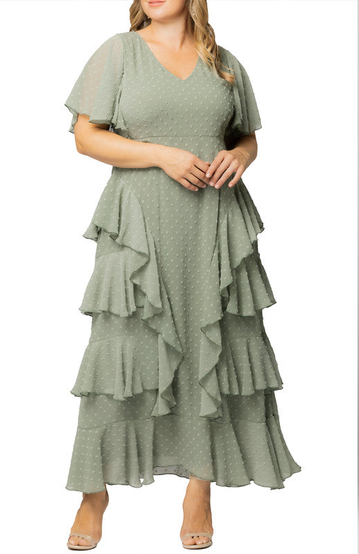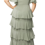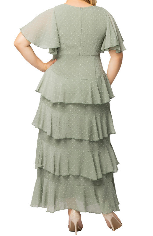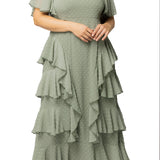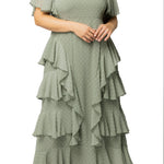 Sage Dot Tour de Flounce Chiffon Gown - Plus