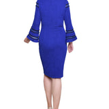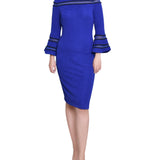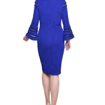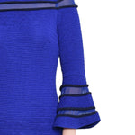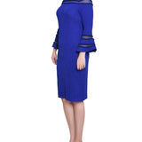 Sapphire Navy Long Bell Sleeve Dress With Contrast Striping