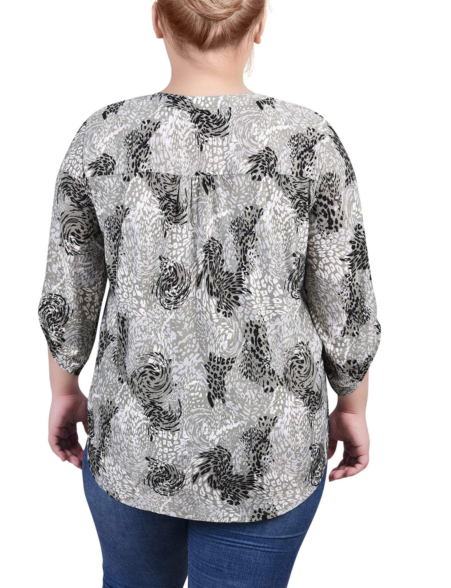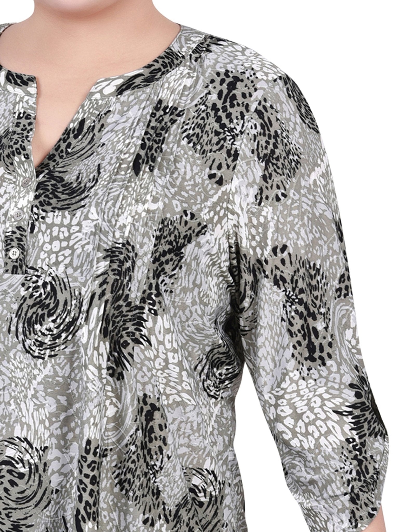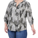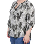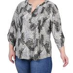 Shadow Black Animal 3/4 Roll Tap Pullover Top - Plus - DressbarnBlouses