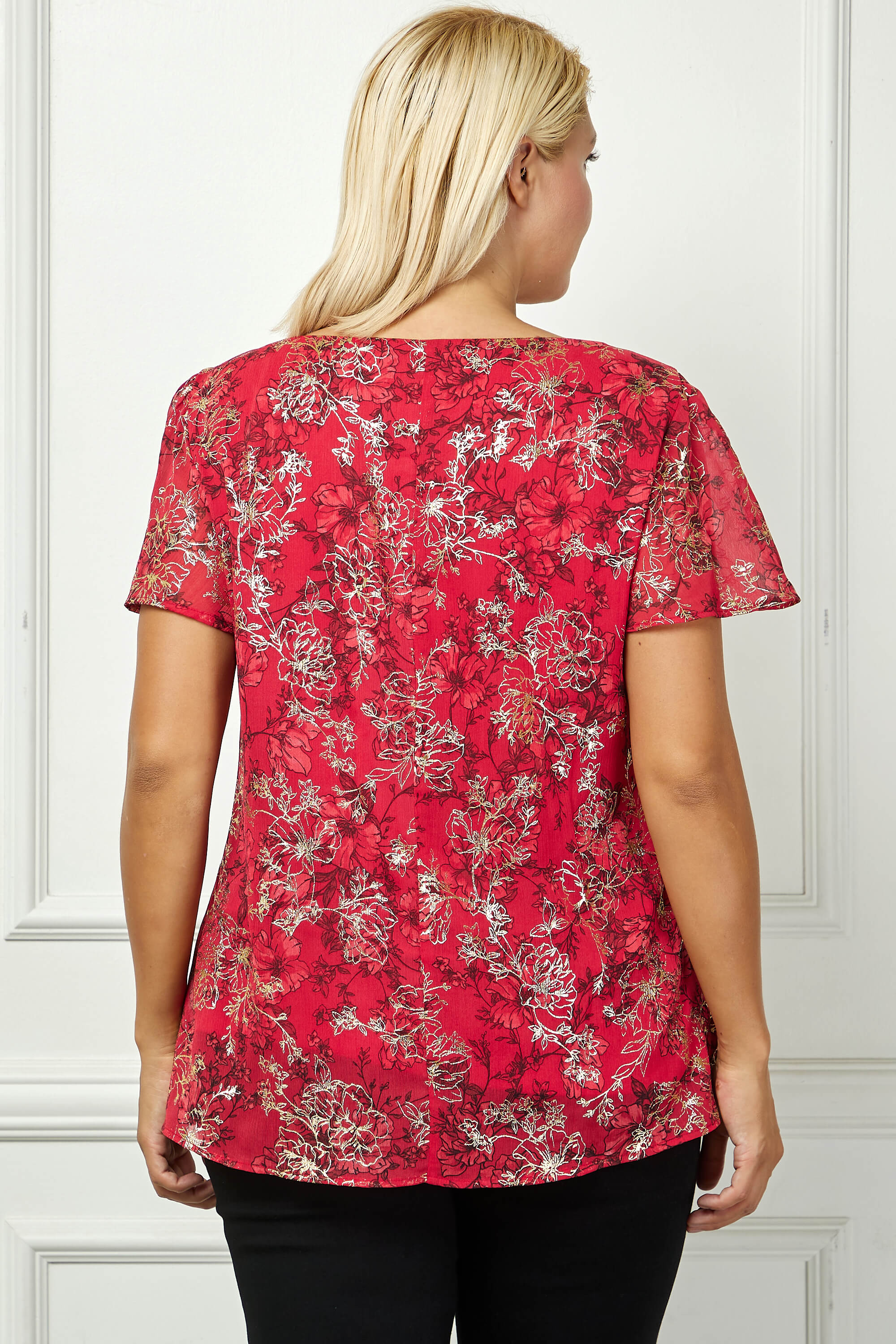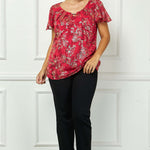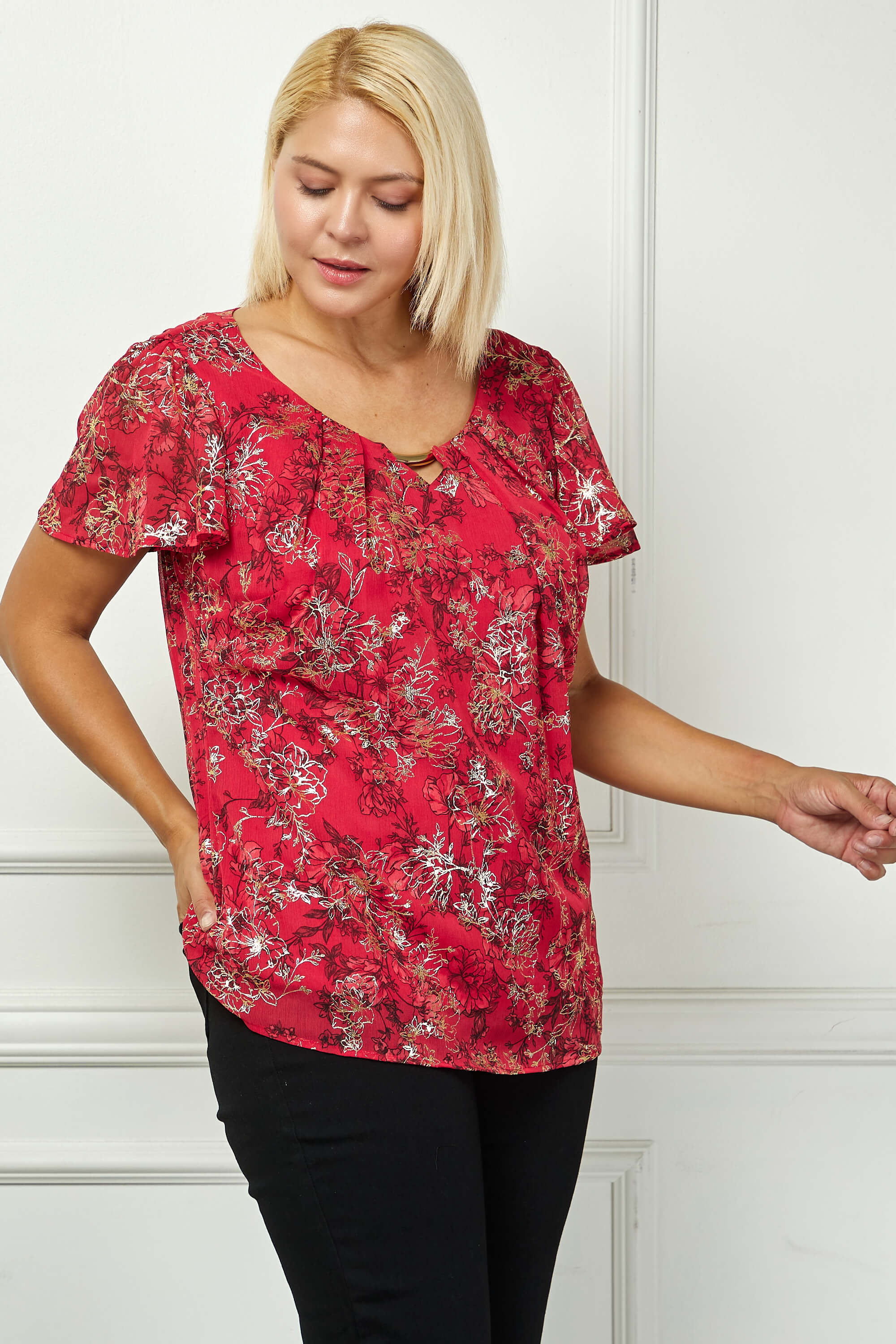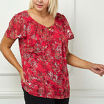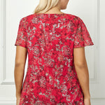 Short Flutter Sleeve Cutout Neck Blouse in Burgundy - Plus