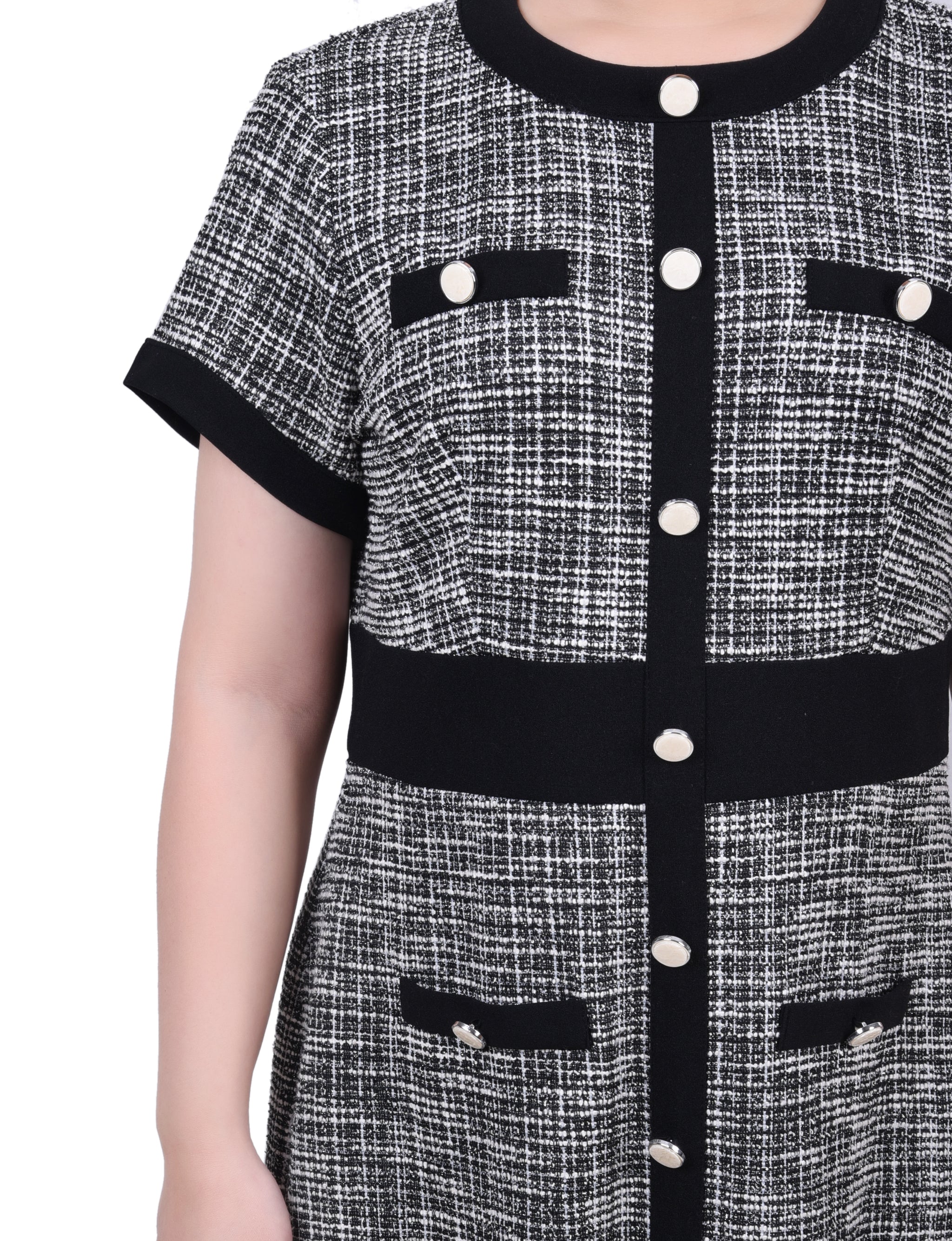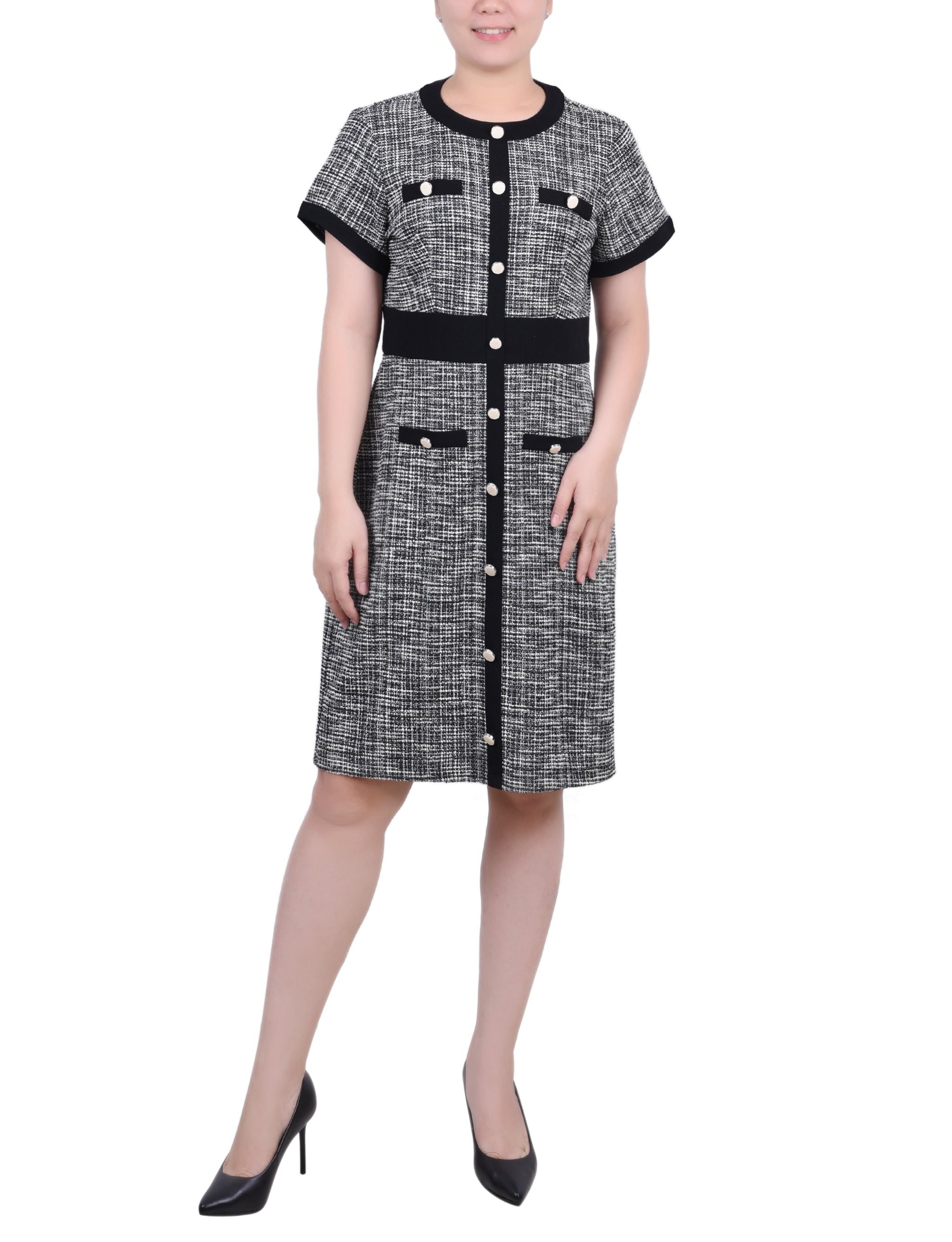 Elevate your wardrobe with this timeless tweed dress from NY Collection. Boasting a sophisticated colorblock design, and finished with a flattering knee-length cut, it's a piece that will take you from desk to dinner in effortless style.
