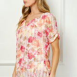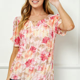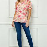 Short Step Sleeve Cutout Trim Front Neck Lined Bubble Blouse
