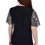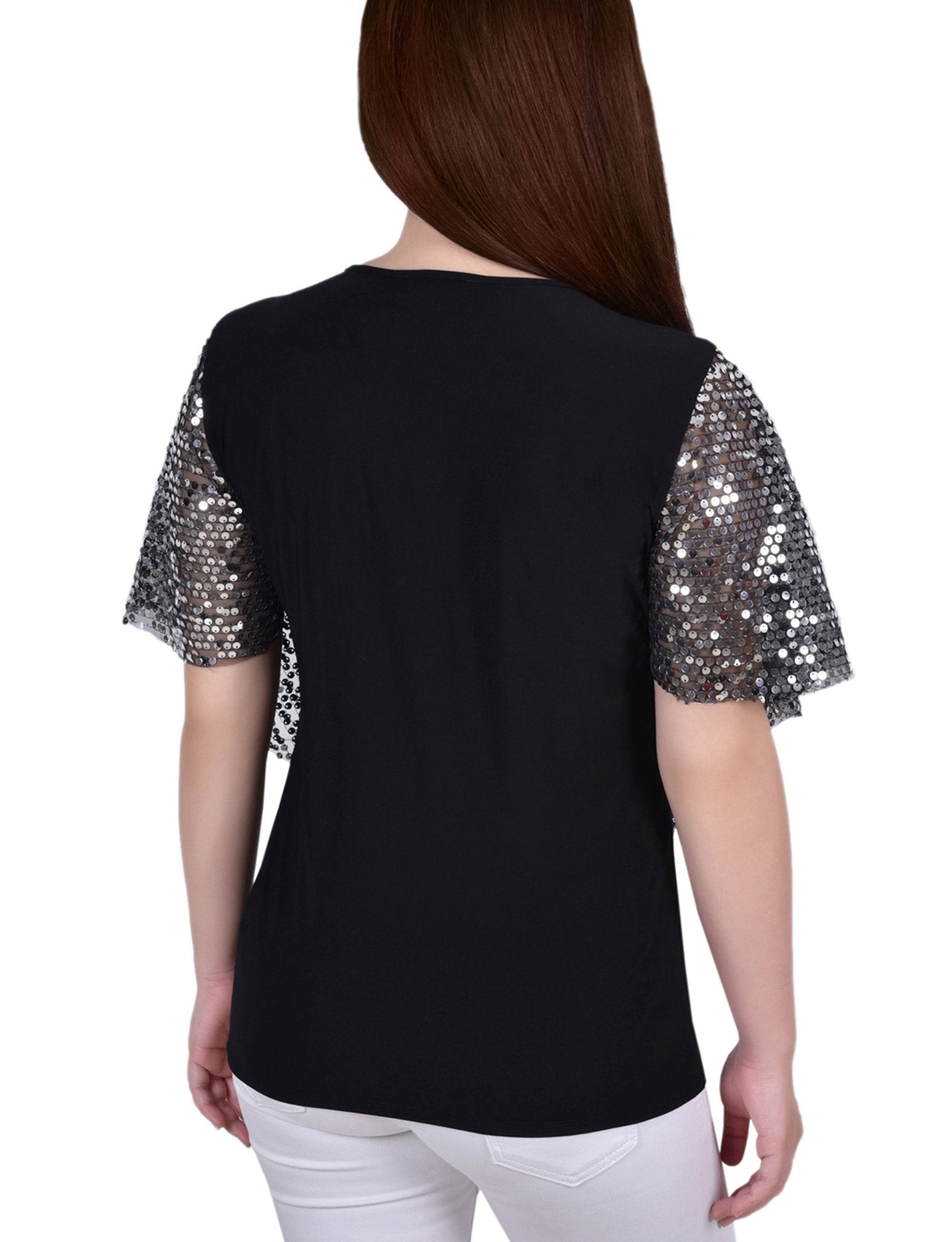 Sequins: 100% Polyester, Solid: 95% Polyester, 5% Spandex