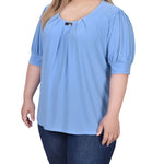 Silver Lake Blue Short Sleeve Balloon Sleeve Top With Hardware - Plus