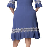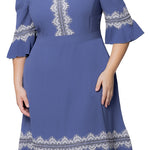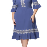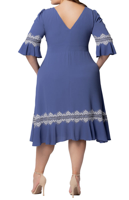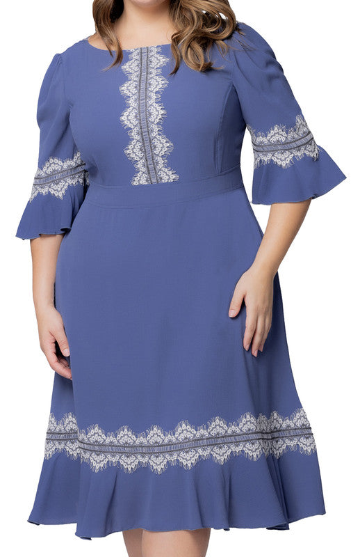 Slate Blue Villa Lace Trim Cocktail Dress - Plus