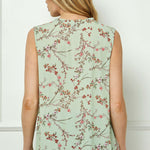 Sleeveless Ruffle Neck Tassel Blouse in Sage