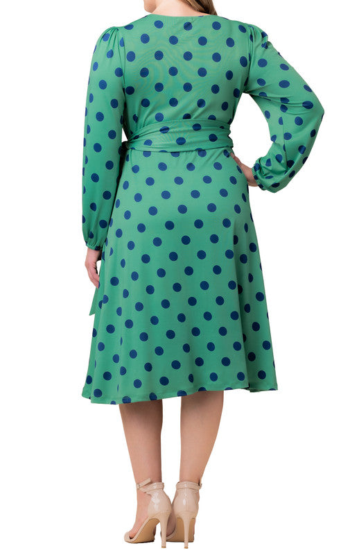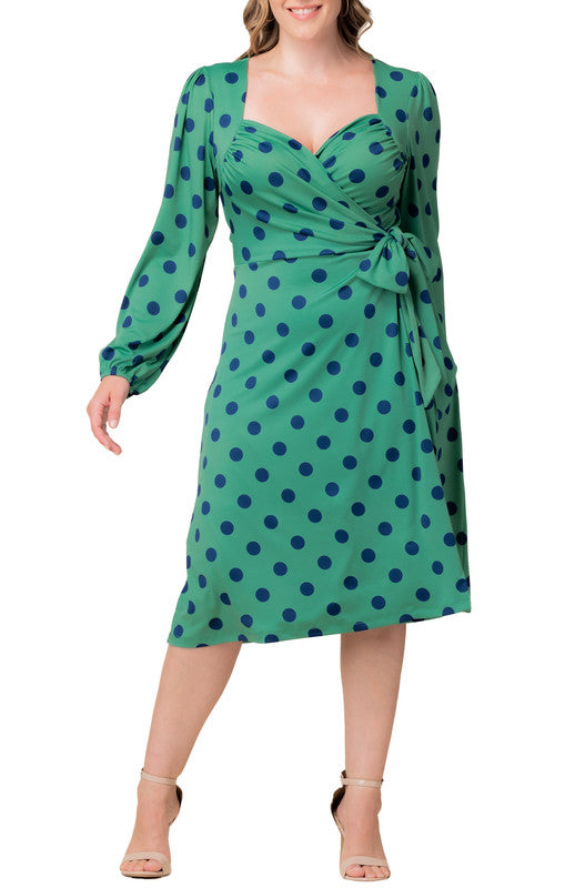 Socialite Sweetheart Dress - Plus - Green Polka Dot