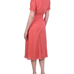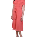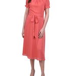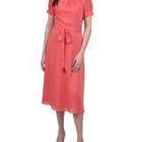 This sweet and simple swiss dot dress, with a tie waist and rouched sleeves, makes for the perfect special occasion dress.