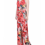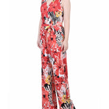 Tropical Sleeveless Belted Jumpsuit - Petite