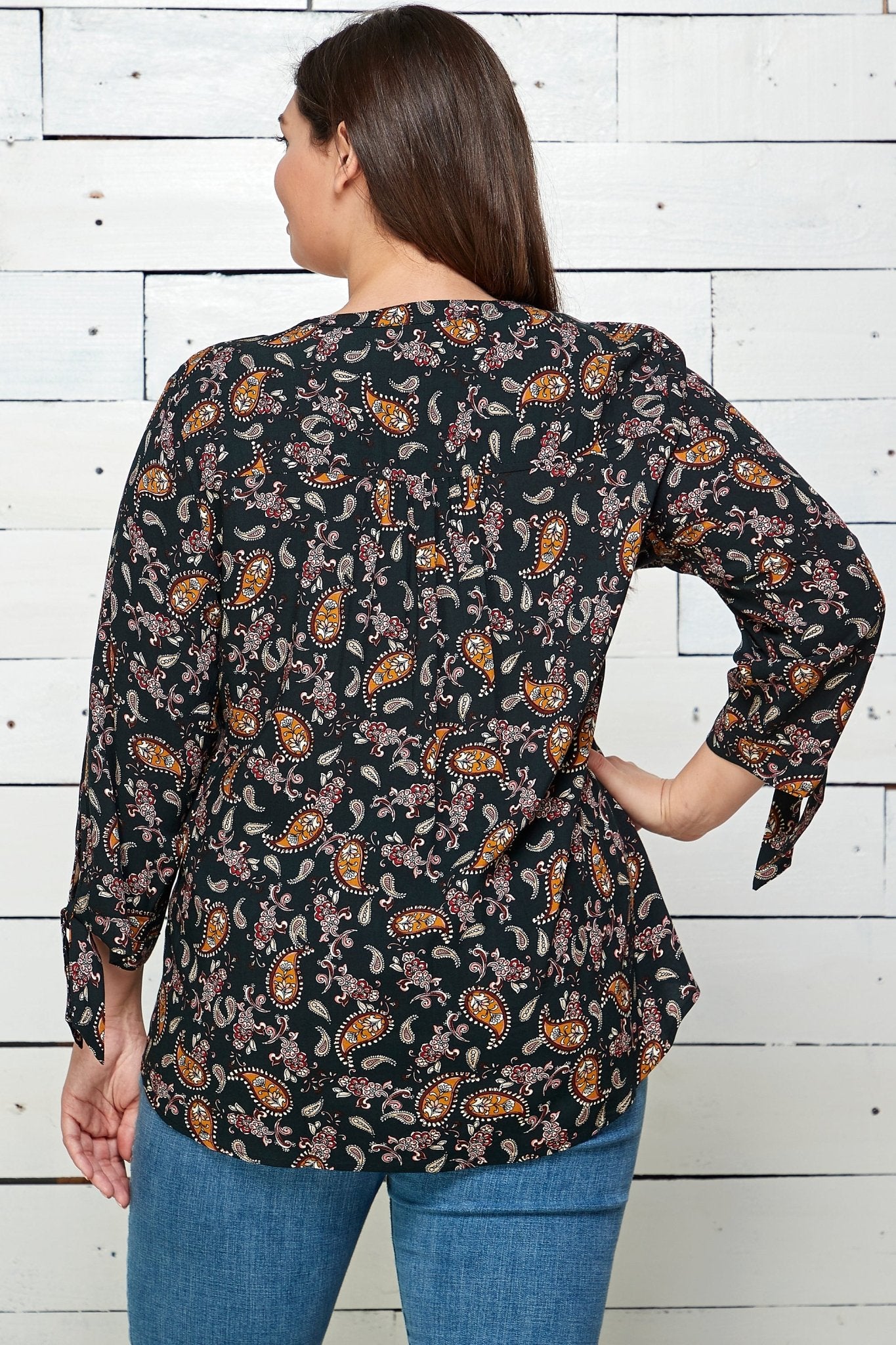 This 3/4 Tie Sleeve popover is the perfect top to give you comfort and style whether you are in the office, out of town, or relaxing at home.