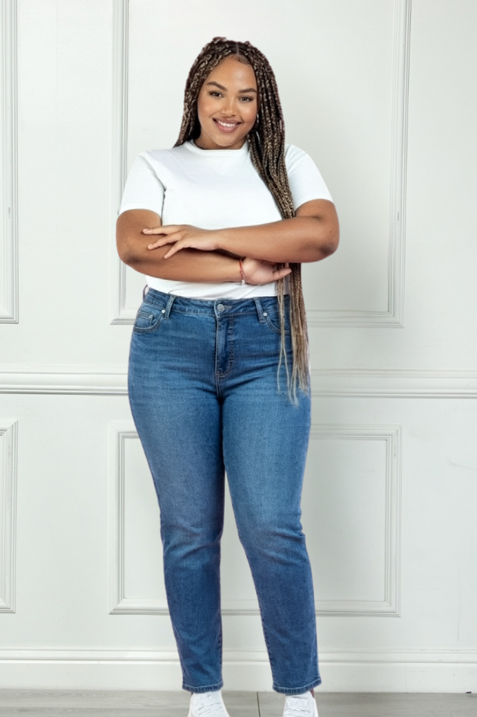 Back by popular demand! Our best-selling Straight Leg Jean is here again in a new Vintage Wash, finished with soft pearl rivets for a pretty, subtle touch. Designed to flatter every shape—and keep you feeling polished all day.