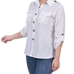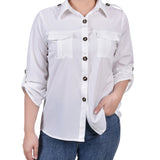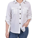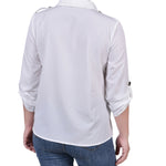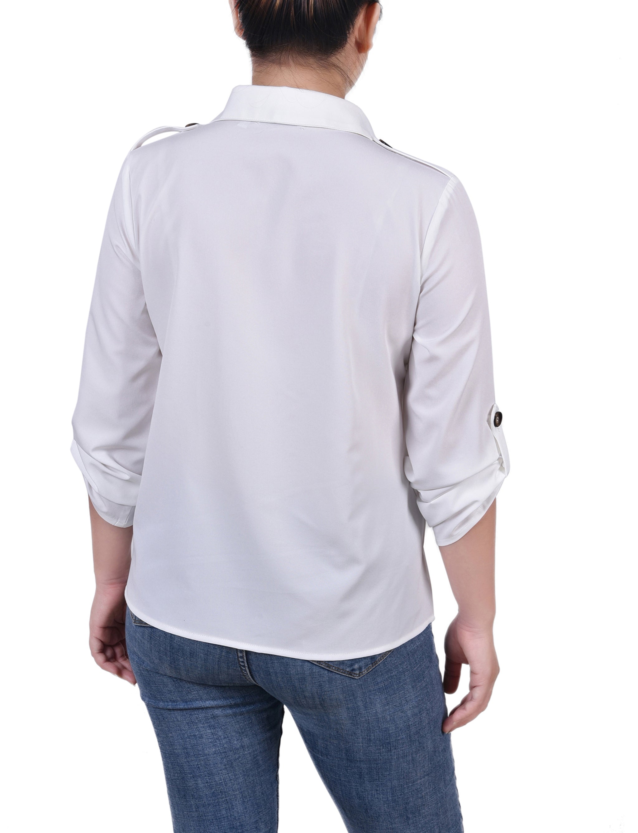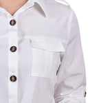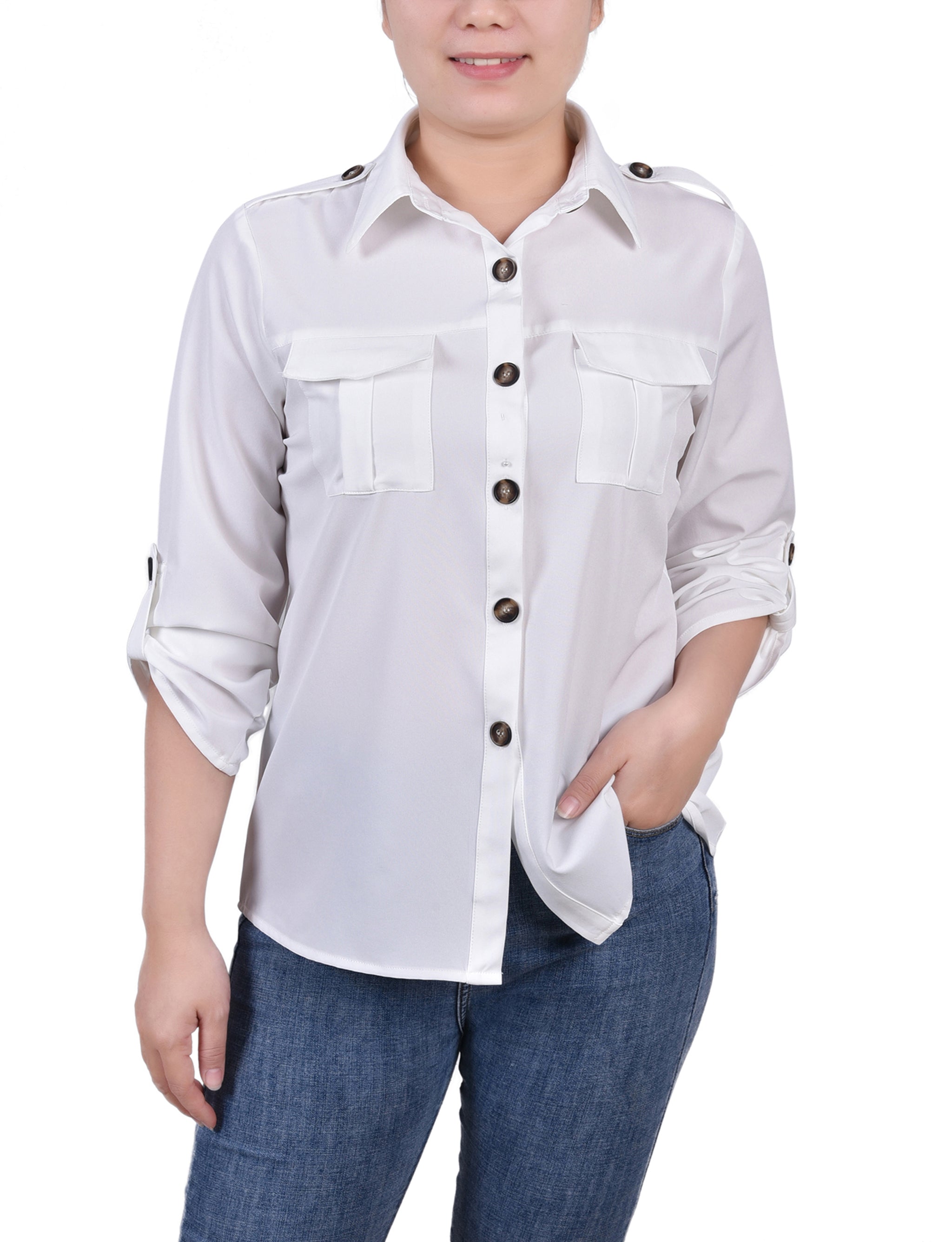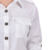 This classic silhouette has been updated by adding shoulder epaulettes and box pleated pockets.