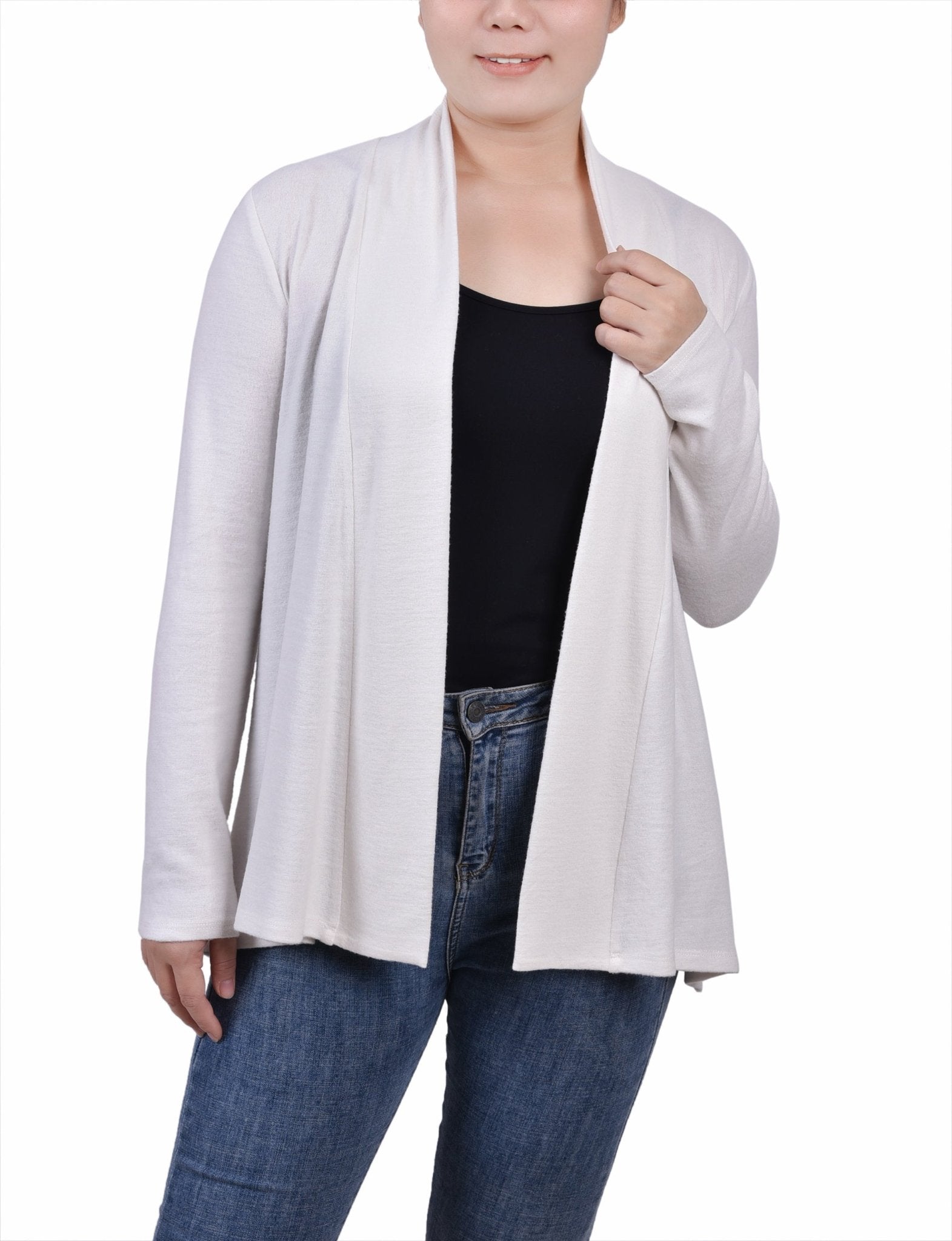 Here's your got-to-have-it piece. This cardigan is soft and lightweight. Great for the office or when out on the town.