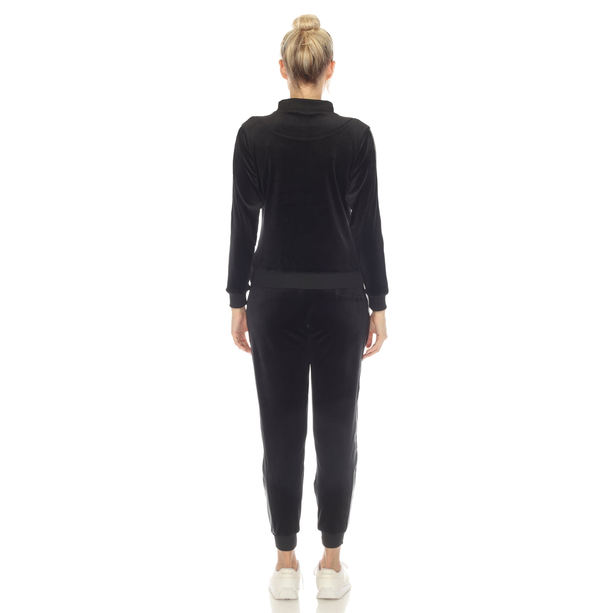 White Mark Women's 2-Piece Velour with Faux Leather Stripe