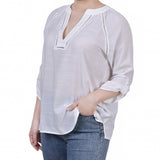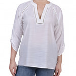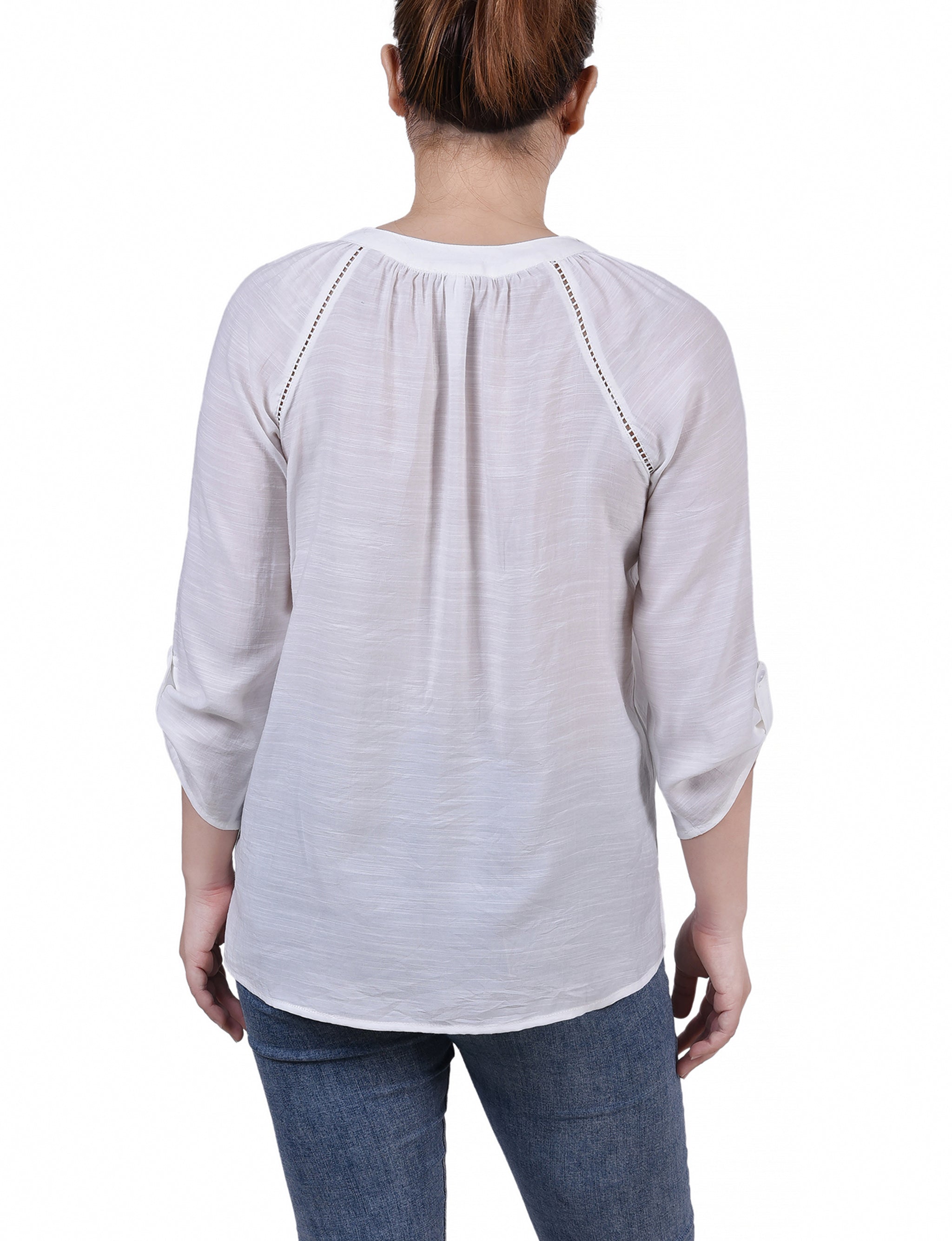 White Raglan Sleeve Split Neck Blouse – Dressbarn