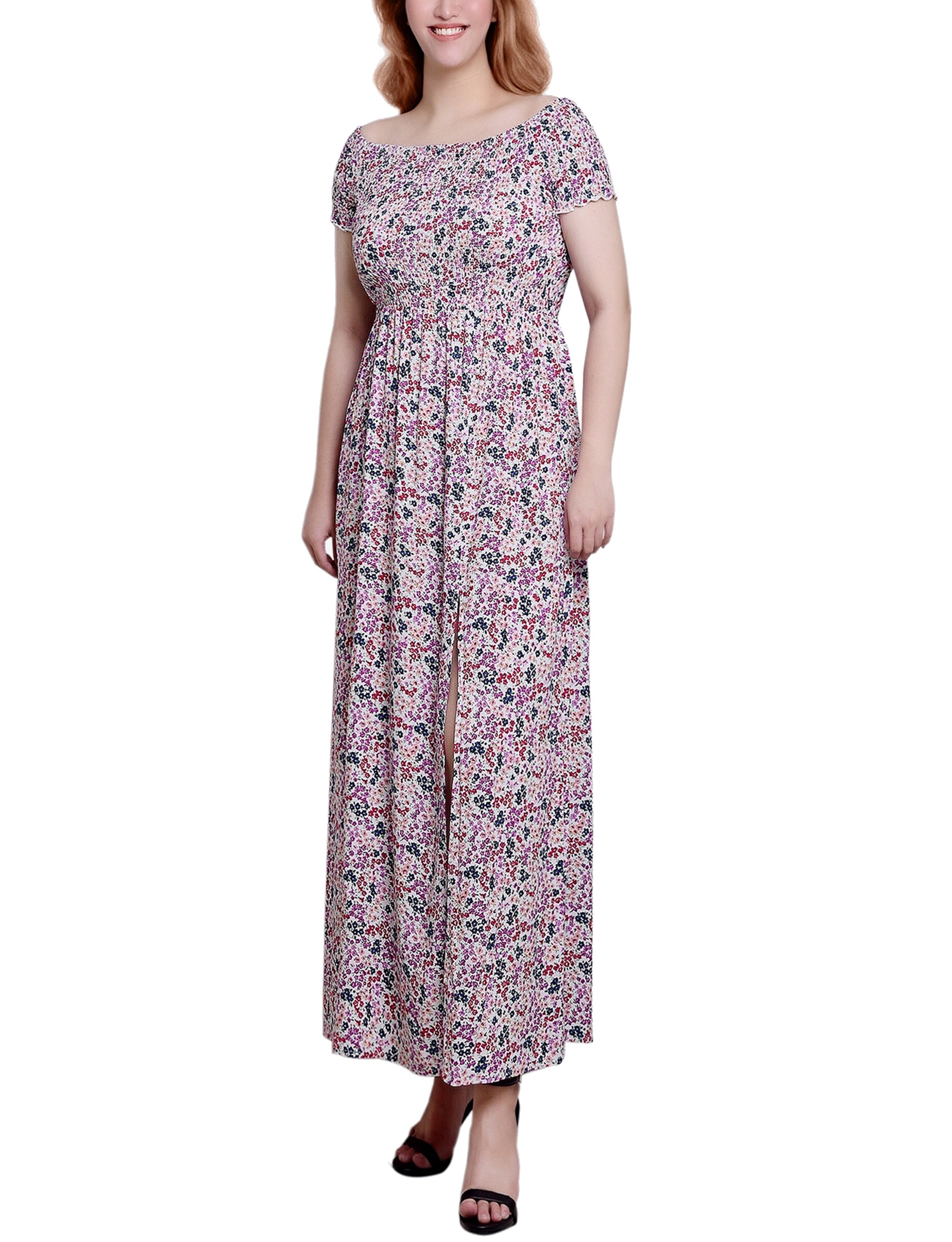 This smocked off-the-shoulder maxi dress is the perfect look for wherever the day takes you.
