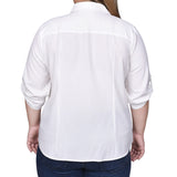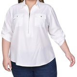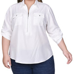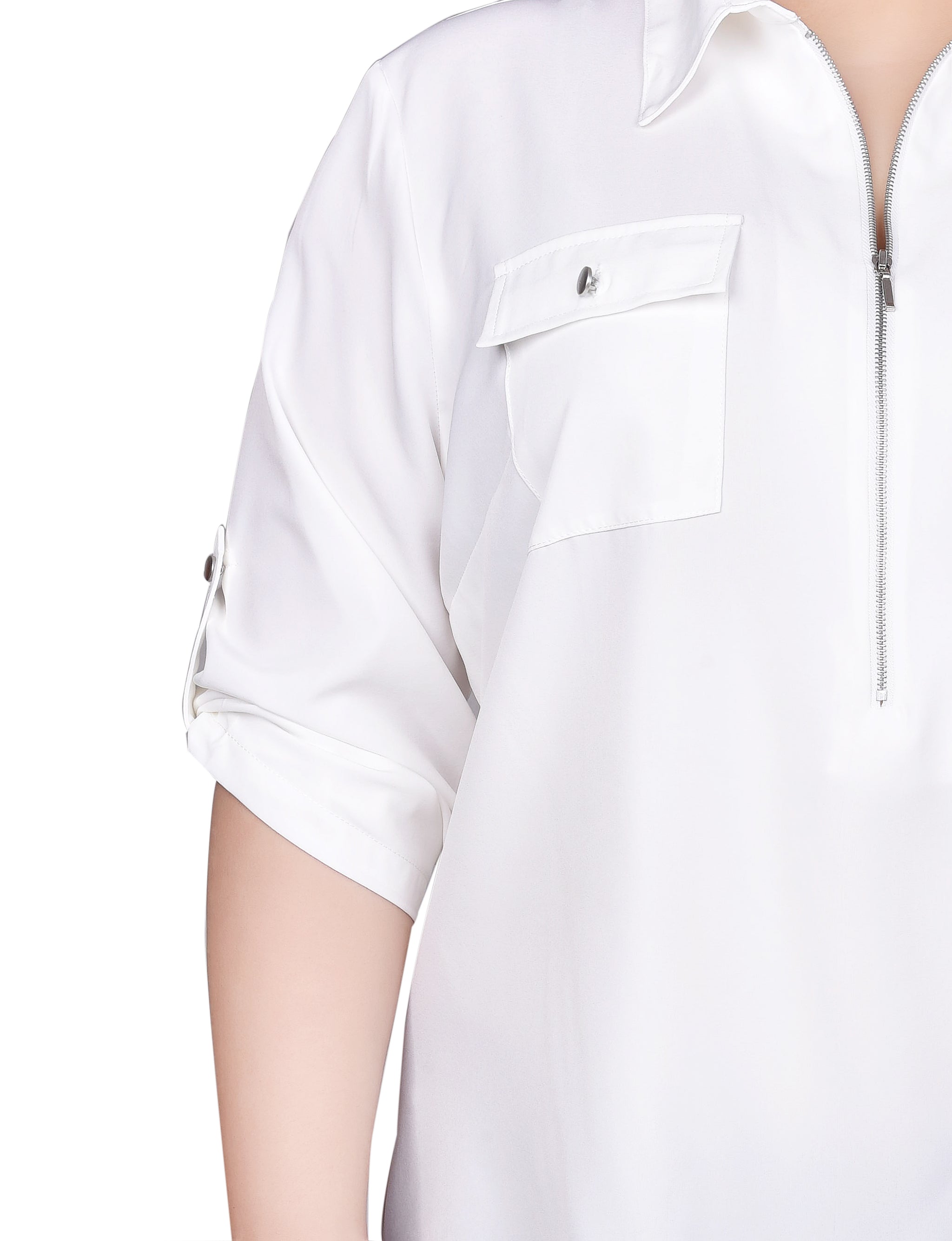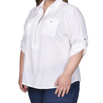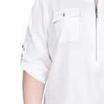 You'll love how you look in this wear-everywhere zip top. Roll tab sleeves and chest pockets complete the look.