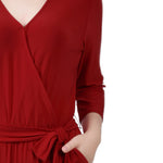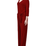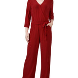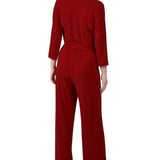 Wine 3/4 Sleeve Belted Jumpsuit – Dressbarn
