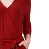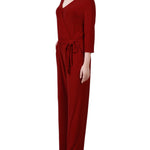 Wine 3/4 Sleeve Belted Jumpsuit