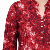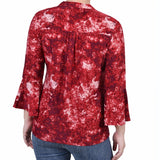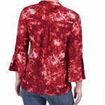 Wine Geobreeze 3/4 Bell Sleeve Pleat Front Y Neck Top - Petite