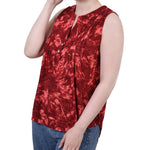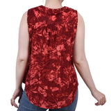 Wine Tie Dye Sleeveless Jacquard Y Neck Top - Petite