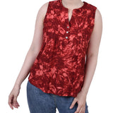 Wine Tie Dye Sleeveless Jacquard Y Neck Top - Petite – Dressbarn