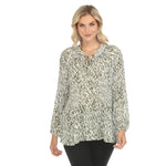 Elevate your everyday style with this women's printed peasant blouse. Perfectly combining comfort and trend, this flowy top features a beautiful geometric print pattern that adds a touch of modern flair to any outfit. The relaxed fit and breathable fabric ensure all-day comfort, while the stylish keyhole tie neckline offers a subtle yet sophisticated detail. Long sleeves with elastic cuffs add versatility, making it an ideal choice for both casual outings and office wear. Pair this chic blouse with skinny jeans or tailored pants for a polished look that's perfect for any occasion.