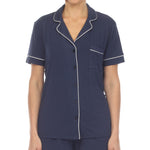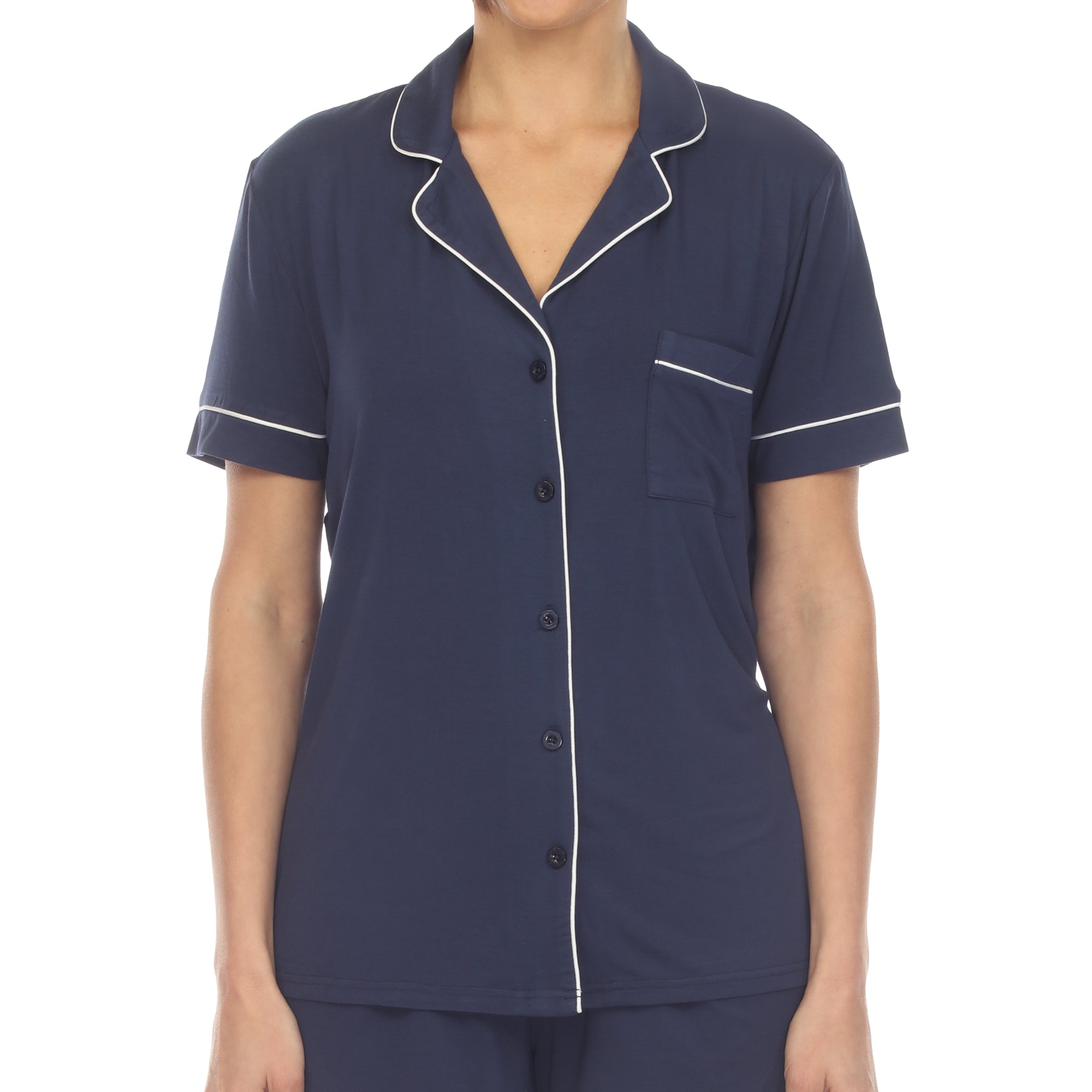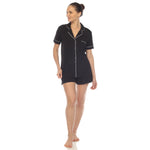 Introducing our Women's Short Sleeve Bamboo Pajama Set – mix of luxurious comfort and eco-friendly style. Our Bamboo Pajama Set includes a short-sleeve top and coordinating bottoms, offering the perfect balance between comfort and style. The top features a notch collar lapel, mini front chest pockets. The shorts feature a full elastic waistband with a relaxed and comfortable fit.