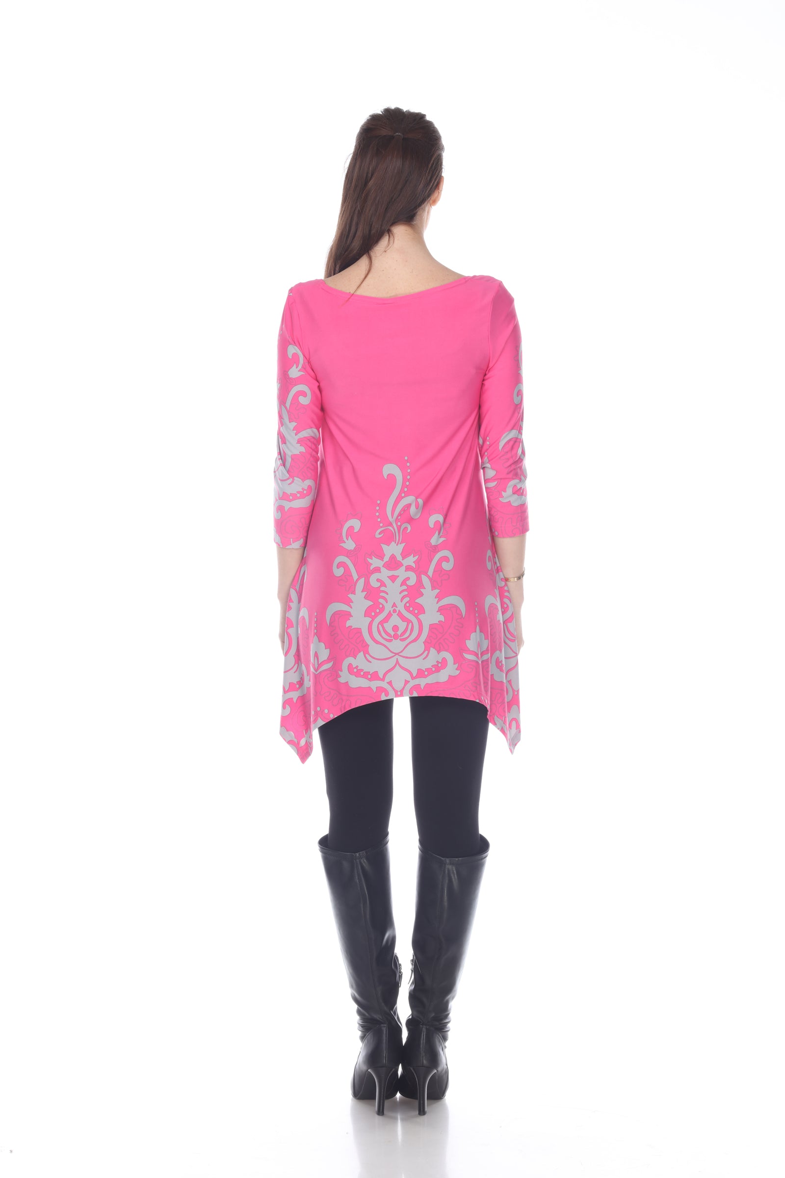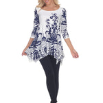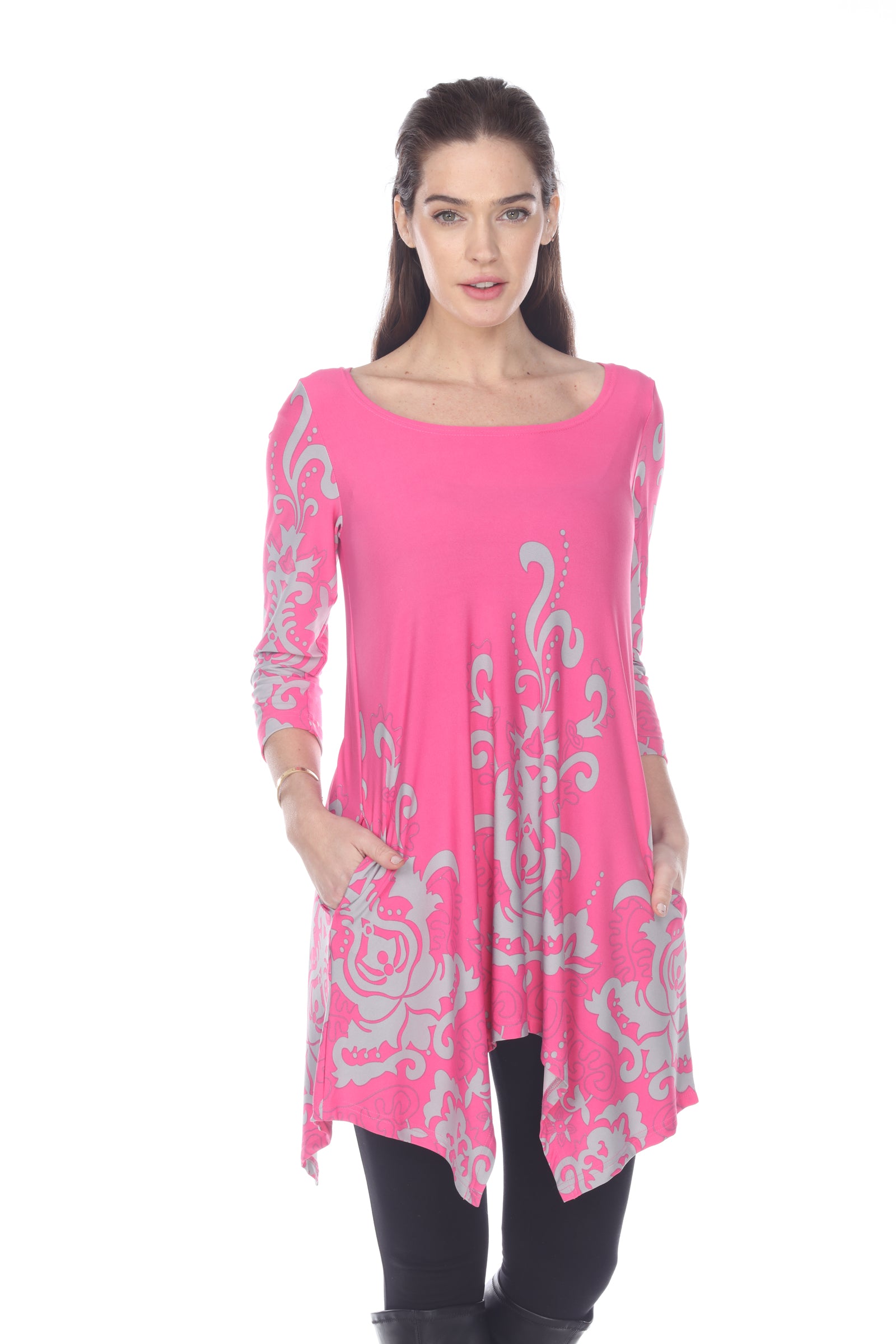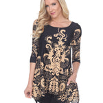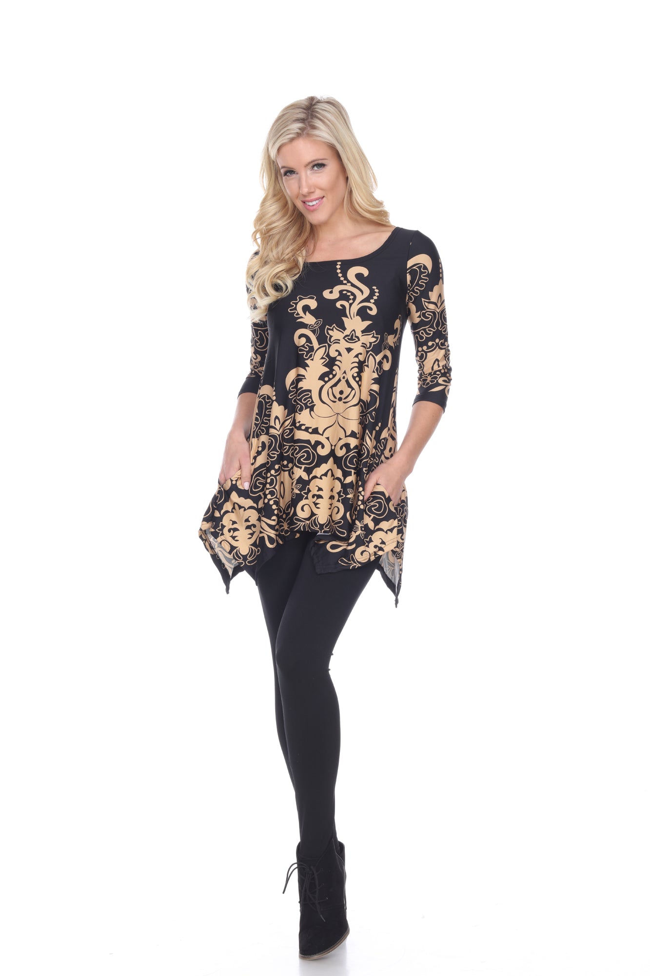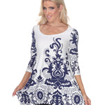 This flattering tunic from White Mark drapes stunningly on your body. With a bold, flirty print and 3/4 sleeves, you are sure to feel comfortable and look stylish.