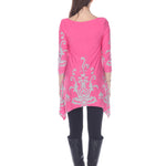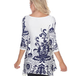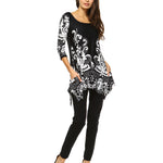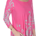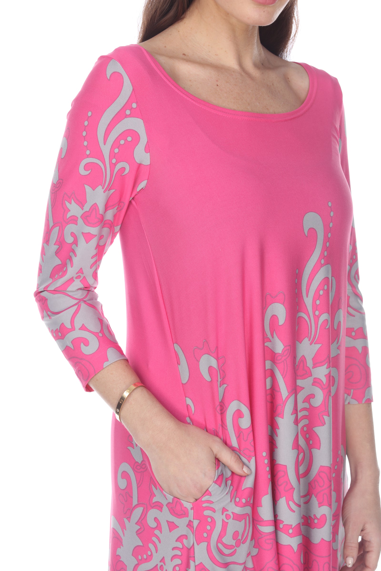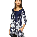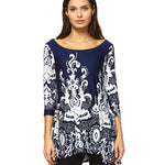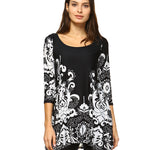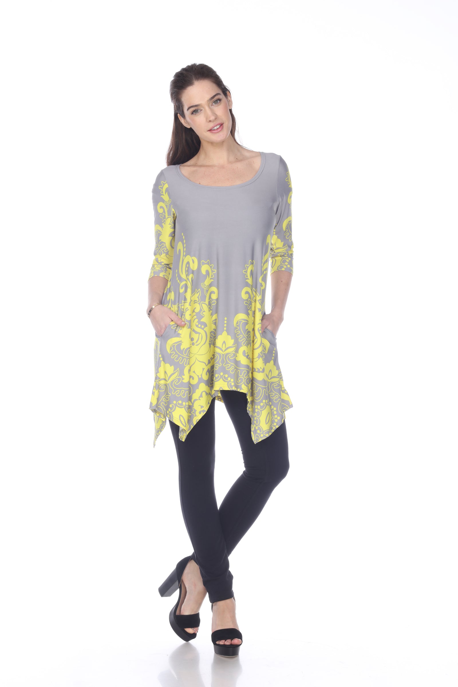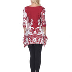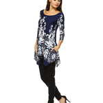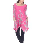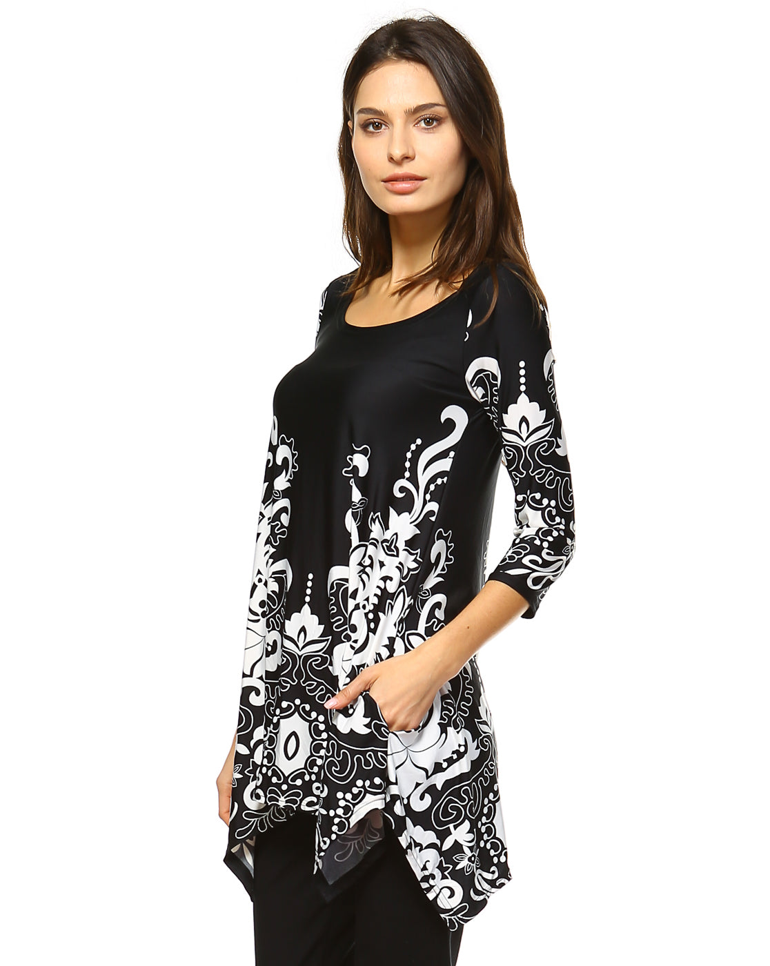 This flattering tunic from White Mark drapes stunningly on your body. With a bold, flirty print and 3/4 sleeves, you are sure to feel comfortable and look stylish.