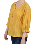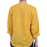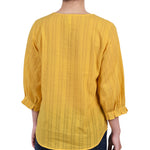 Yellow 3/4 Sleeve Button Placket Jacquard Blouse - Petite – Dressbarn