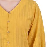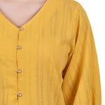 Yellow 3/4 Sleeve Button Placket Jacquard Blouse - Petite