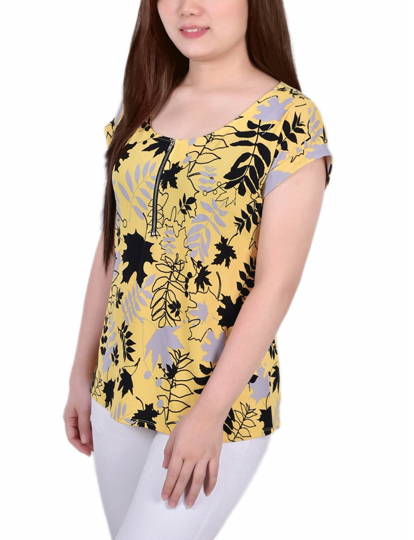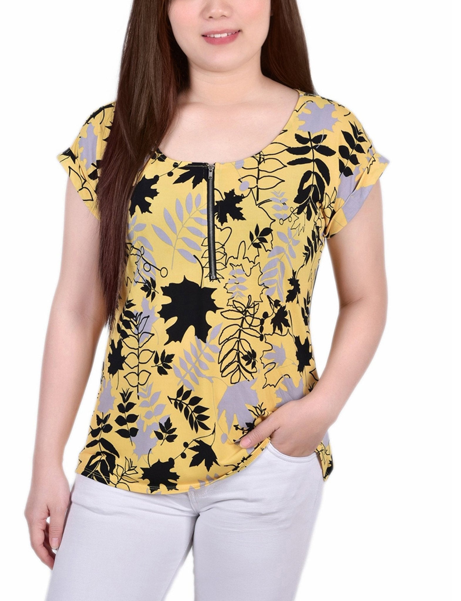 This cute yet stylish top will have you wanting one in every color. You will love the zippered placket and cuffed sleeve.