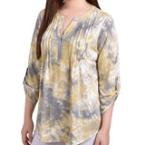Yellow Tiedye 3/4 Bell Sleeve Pleat Front Y Neck Top - DressbarnBlouses